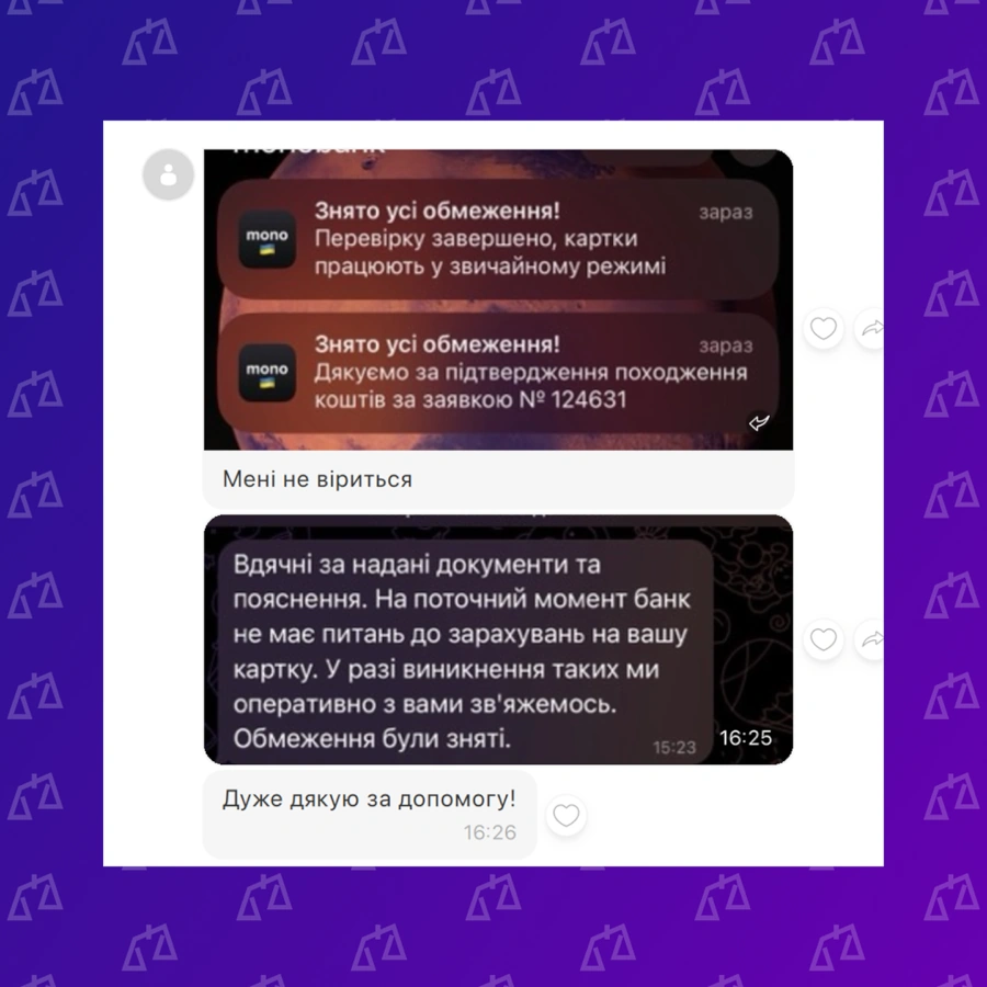 Розблокування рахунку після фінмоніторингу