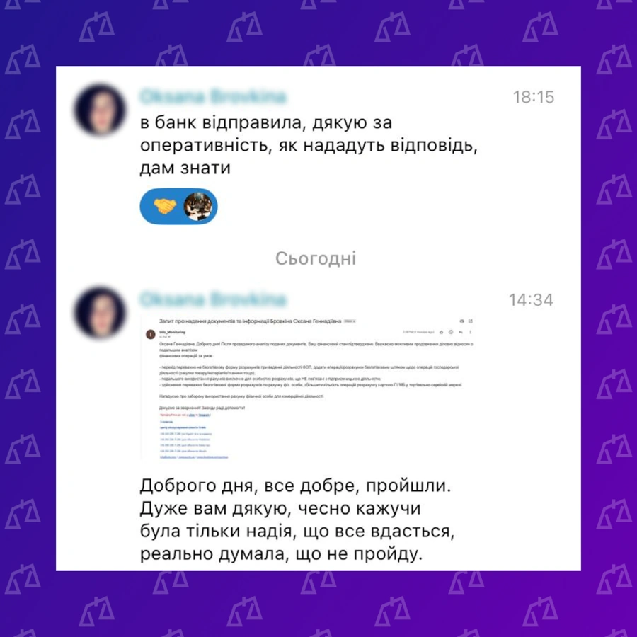 - Результат: Рахунок ФОП розблоковано